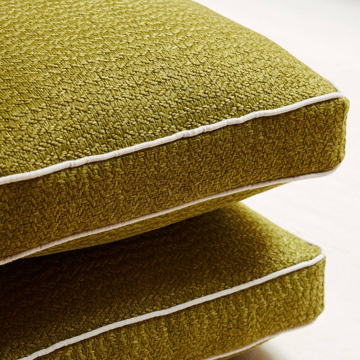 Ein und dasselbe Garn wird für den Schuss und die Kette von Dune verwendet. Dadurch entsteht eine großzügige Textur mit tiefen, intensiven Farben, die den subtilen Glanz dieses Garns offenbart.
