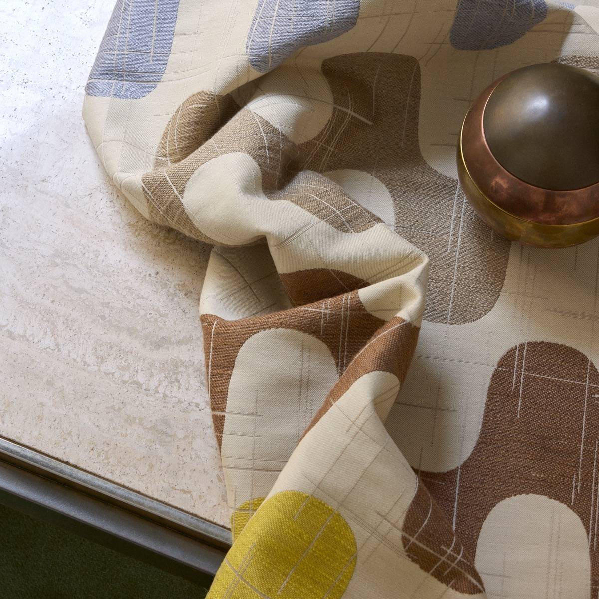 Giardino ist ein sehr großes Design aus den Siebzigern, welches sich mit ebenso extravaganten Farben schmückt wie die Kurven, die es durchziehen. Seine Abrasionen verleihen diesem Dekorations- und Bezugsstoff zusätzliche Textur.