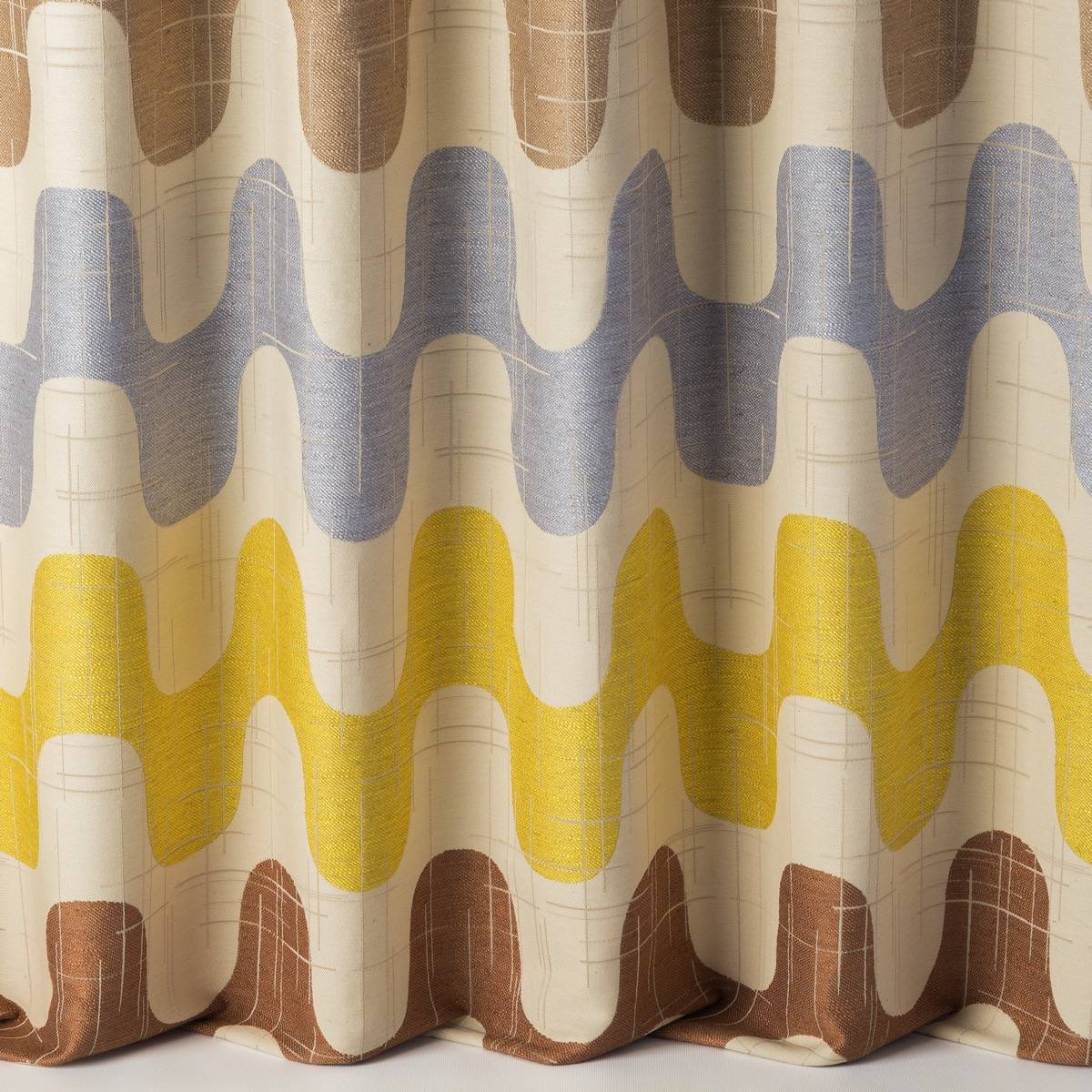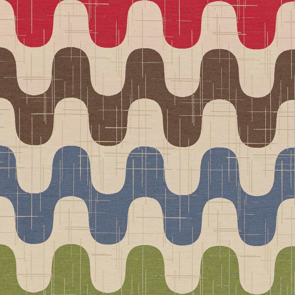 Giardino ist ein sehr großes Design aus den Siebzigern, welches sich mit ebenso extravaganten Farben schmückt wie die Kurven, die es durchziehen. Seine Abrasionen verleihen diesem Dekorations- und Bezugsstoff zusätzliche Textur.