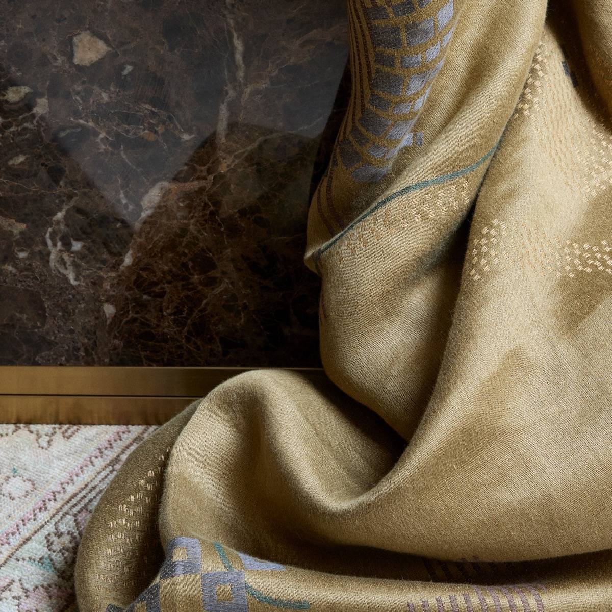 Minuit à Bord ist ein edler Jacquard aus Leinen, der mit seinen Linien und grafischen Mustern, die an kostbare Buchbindearbeiten erinnern, eine Hommage an die Art-Déco-Epoche der 1930er Jahre darstellt. Seine eleganten Farben unterstreichen die Raffinesse seines Designs.