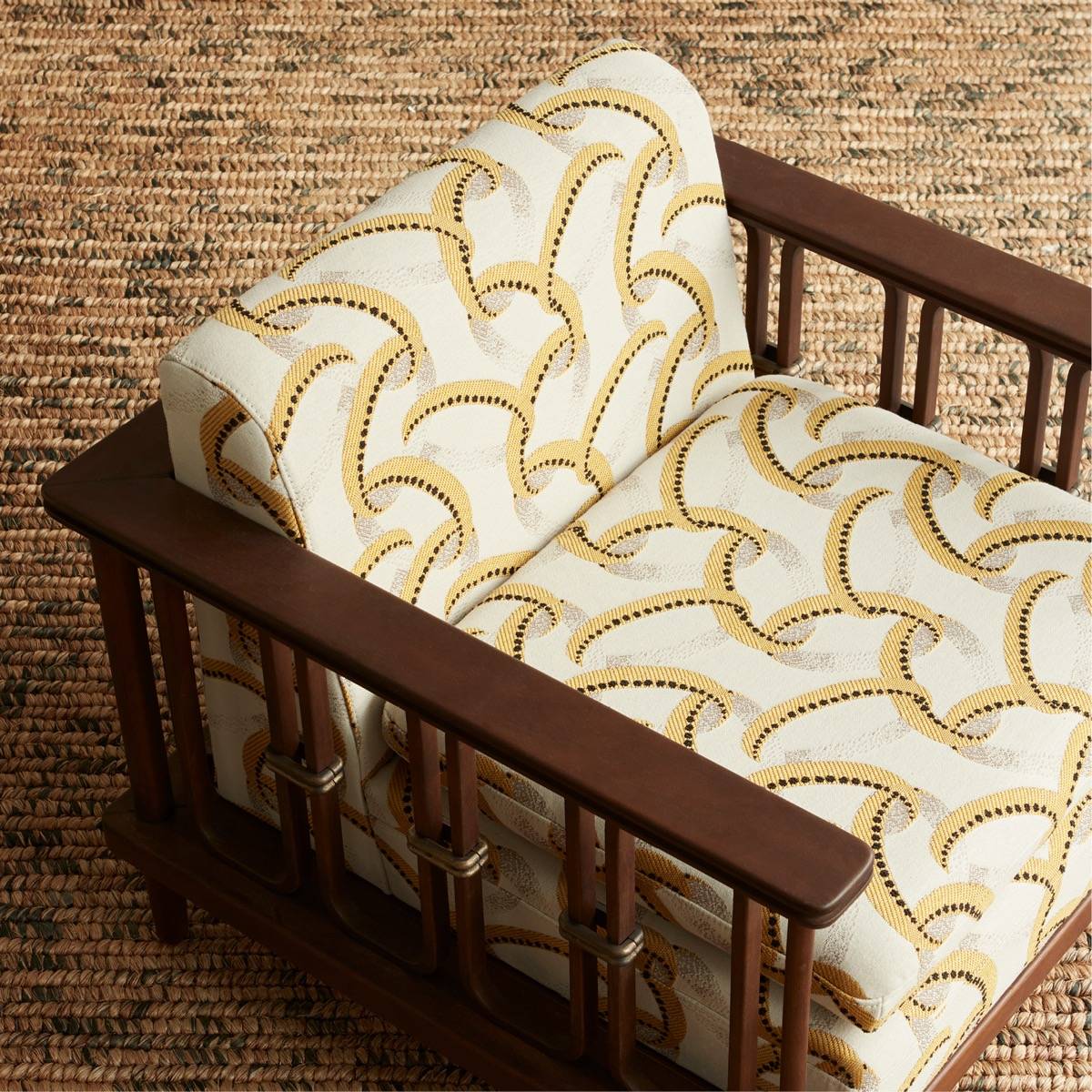 Paloma ist ein schwer entflammbarer Outdoor-Jacquard mit Kettenmotiv, bei welchem die Glanzstellen durch einen Boucléfaden akzentuiert werden.