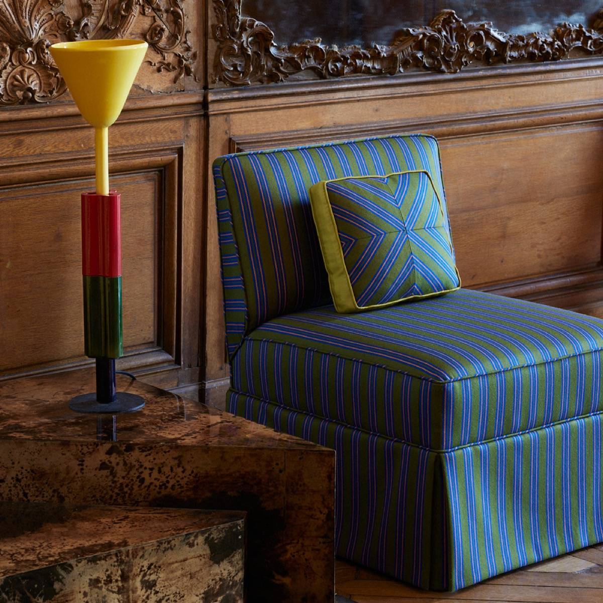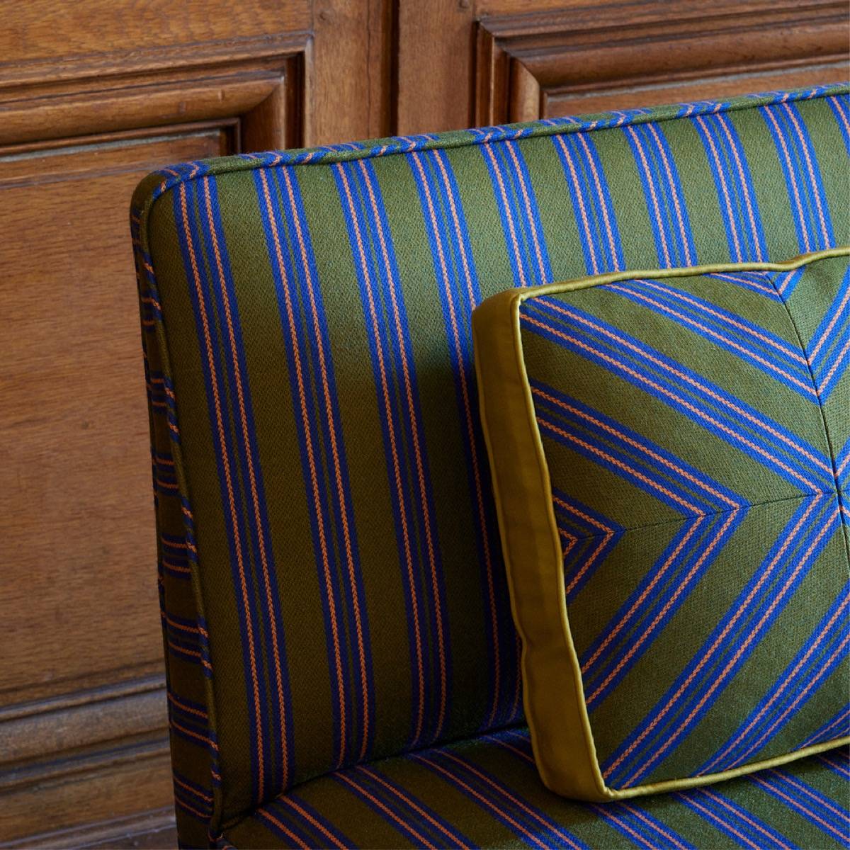 Rayure Gladstone ist eine Hommage an den Anzug. Mit sechs Kontrastfarben steht er zu seiner wolligen Textur.