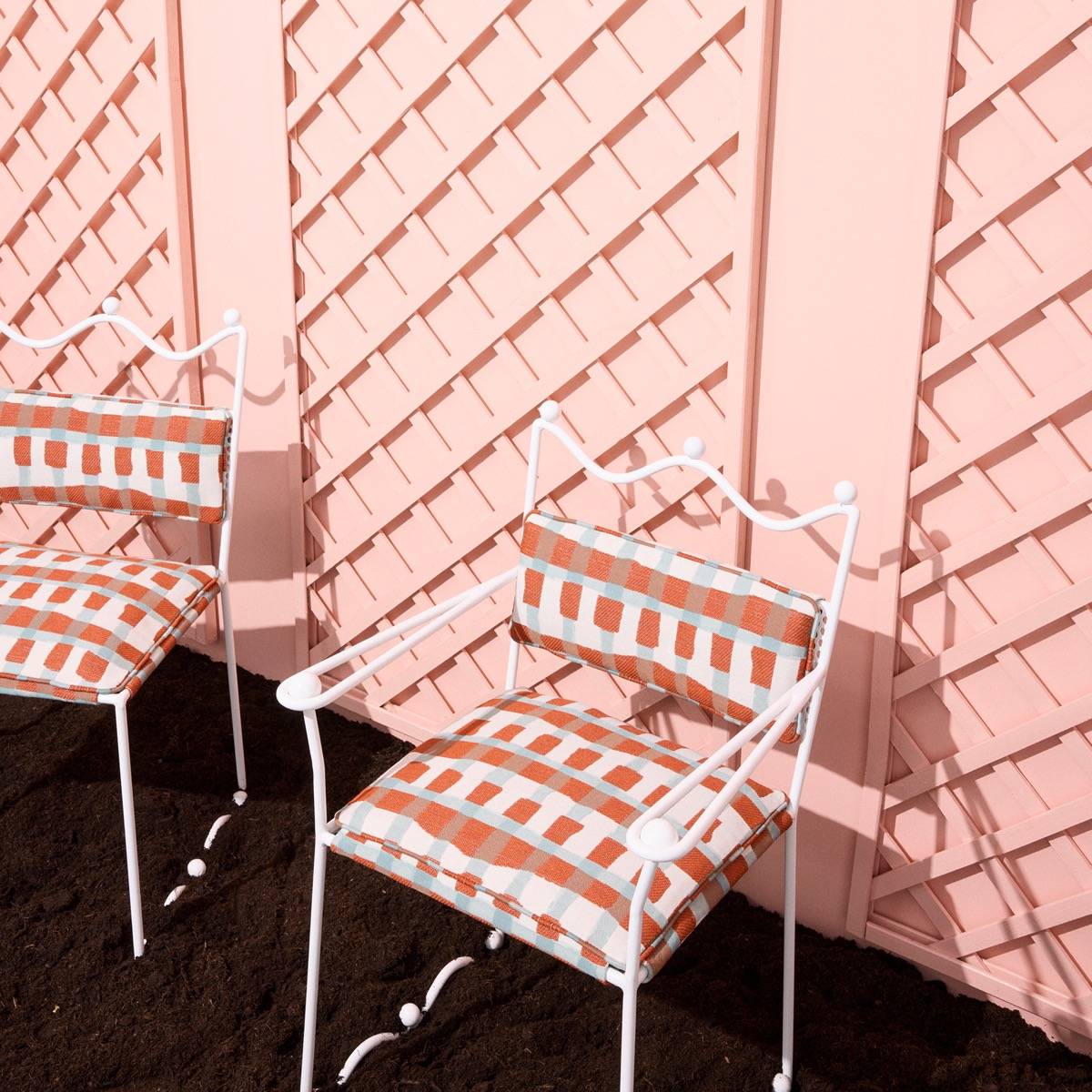 Der Effekt der sich überlagernden Farben verleiht dem Outdoor-Jacquard Somma das Aussehen von Lasurglasuren.
