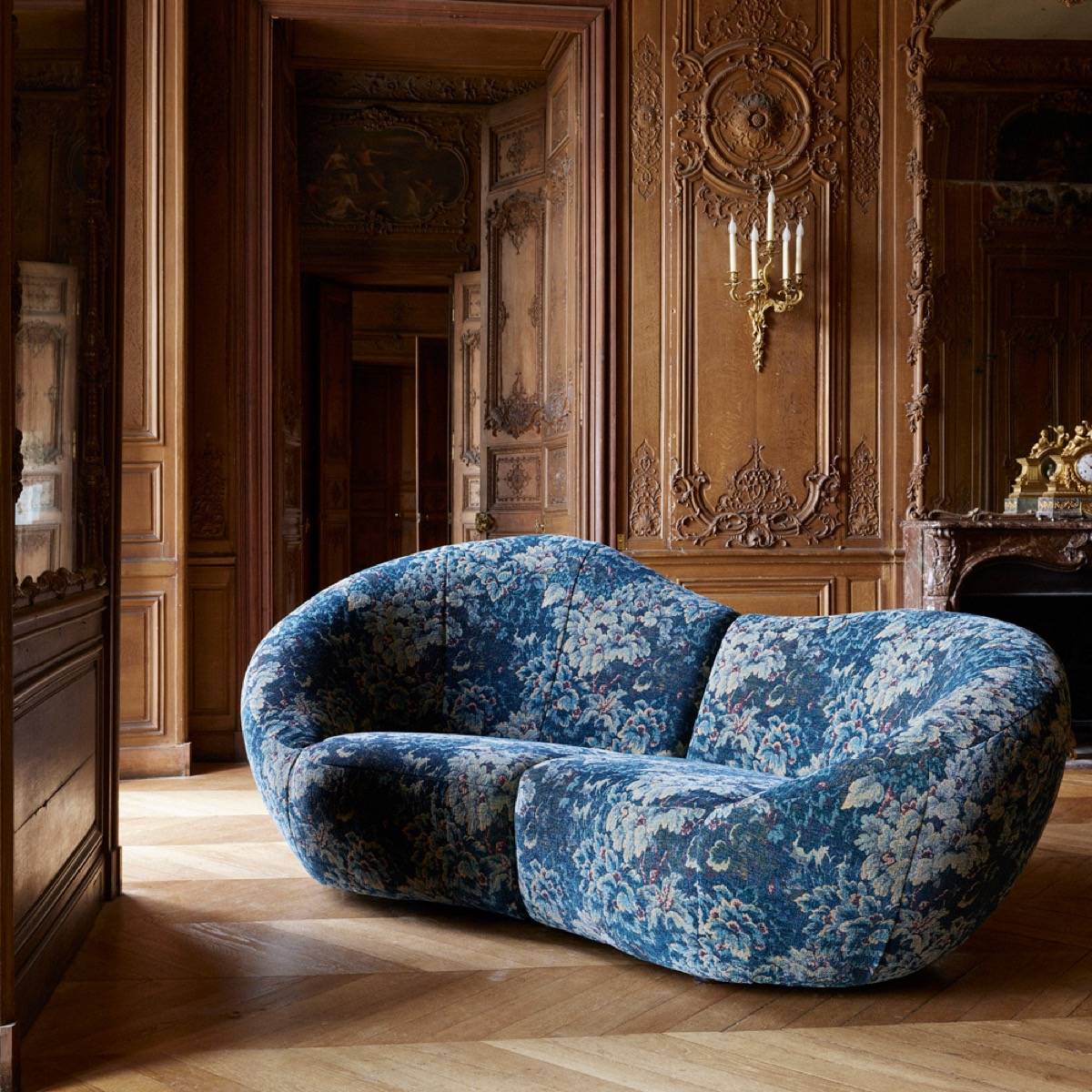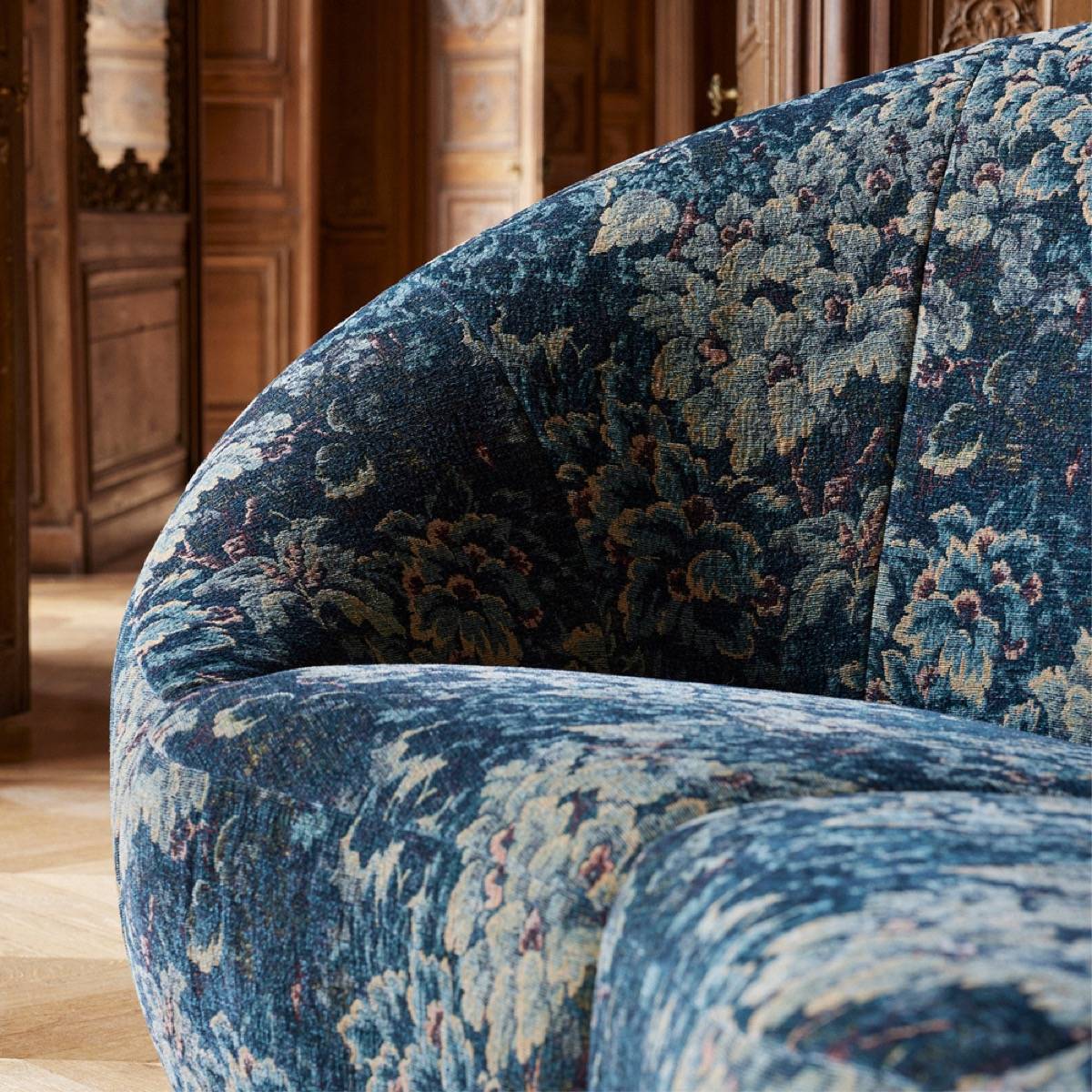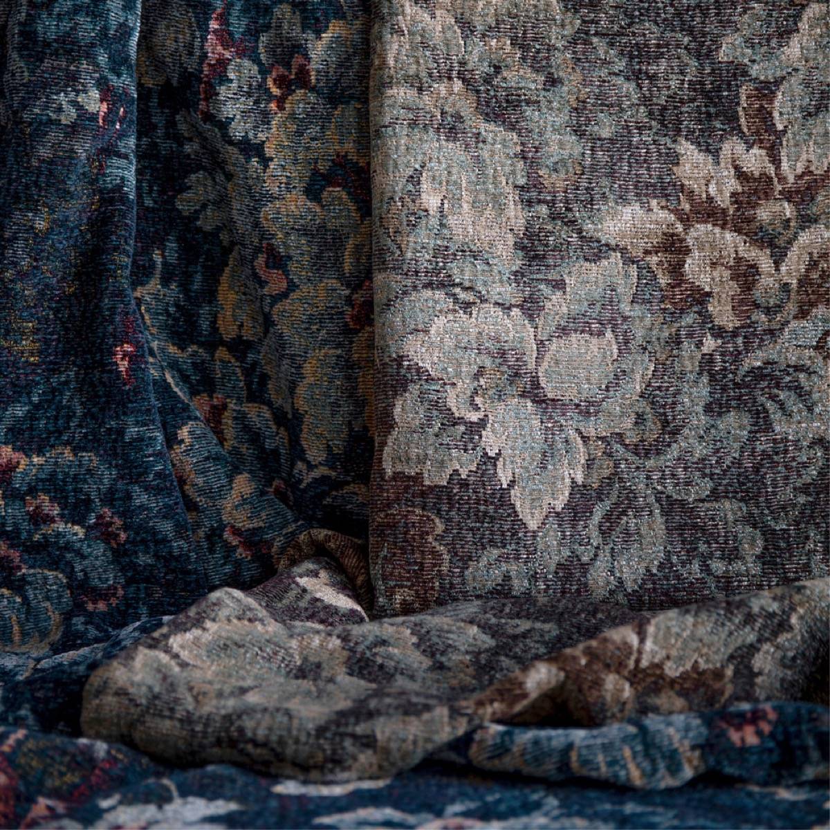 The Cluny tapestry is presented in two variations of soft, deep colours. The aged look given by this chenille velvet takes us back to 17th-century Flanders, the birthplace of the Verdure motif.