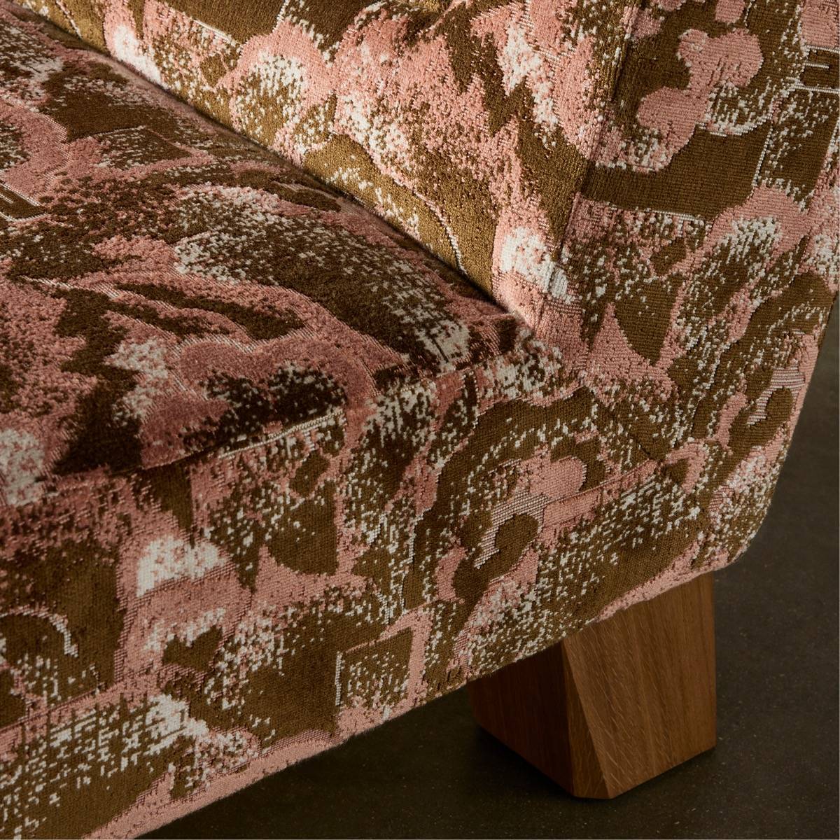 An audacious and contrasted velvet, Kupka and its textured shapes recall the non-figurative landscapes of early 20th-century painters. The contrast between the mattness of the bouclés and the shine of the velvet pile makes its surface resonate.