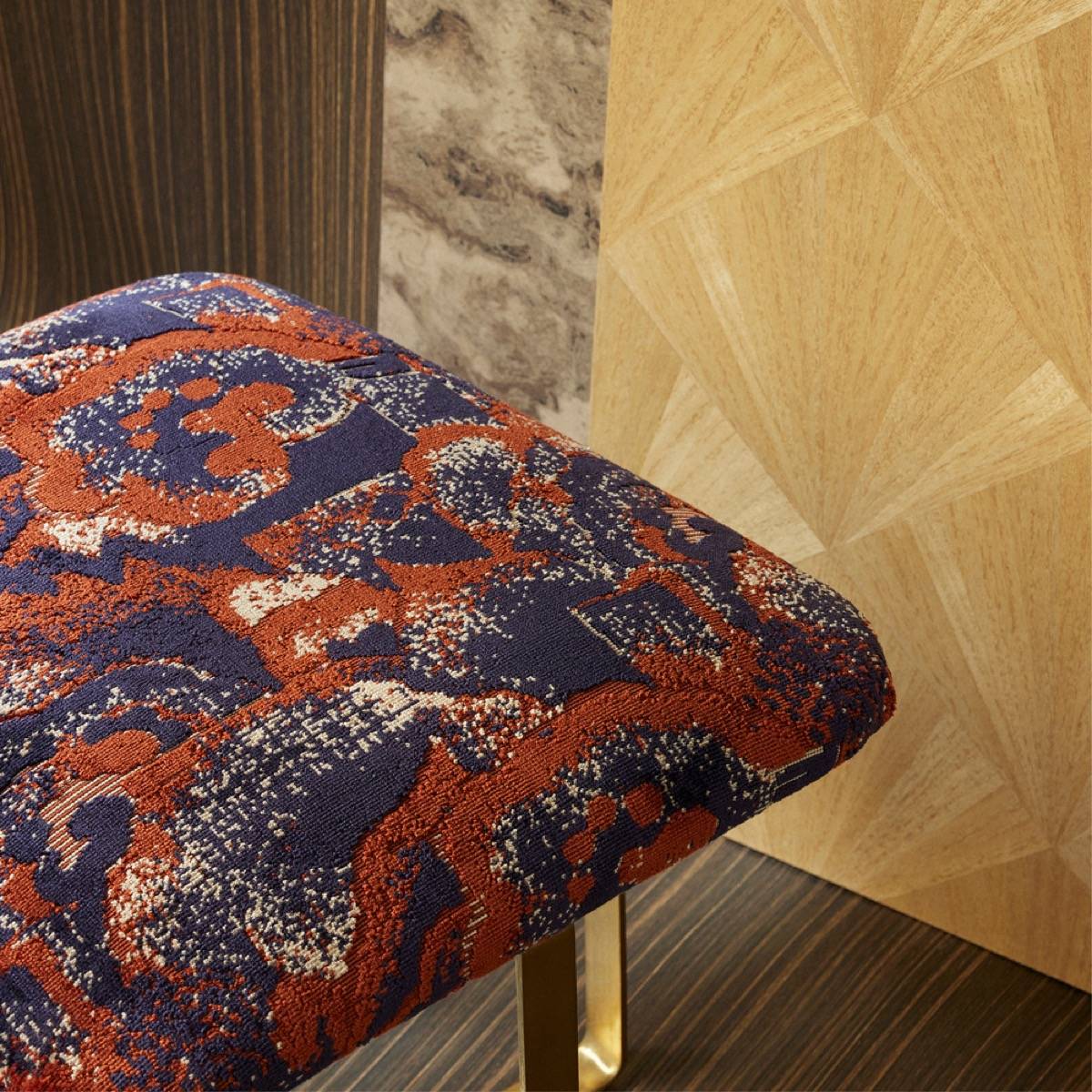 Velours audacieux tout en contraste, Kupka et ses formes texturées rappellent les paysages non-figuratifs des peintres du début du 20e siècle. Le contraste entre la matité des boucles et la brillance des poils du velours font vibrer sa surface.