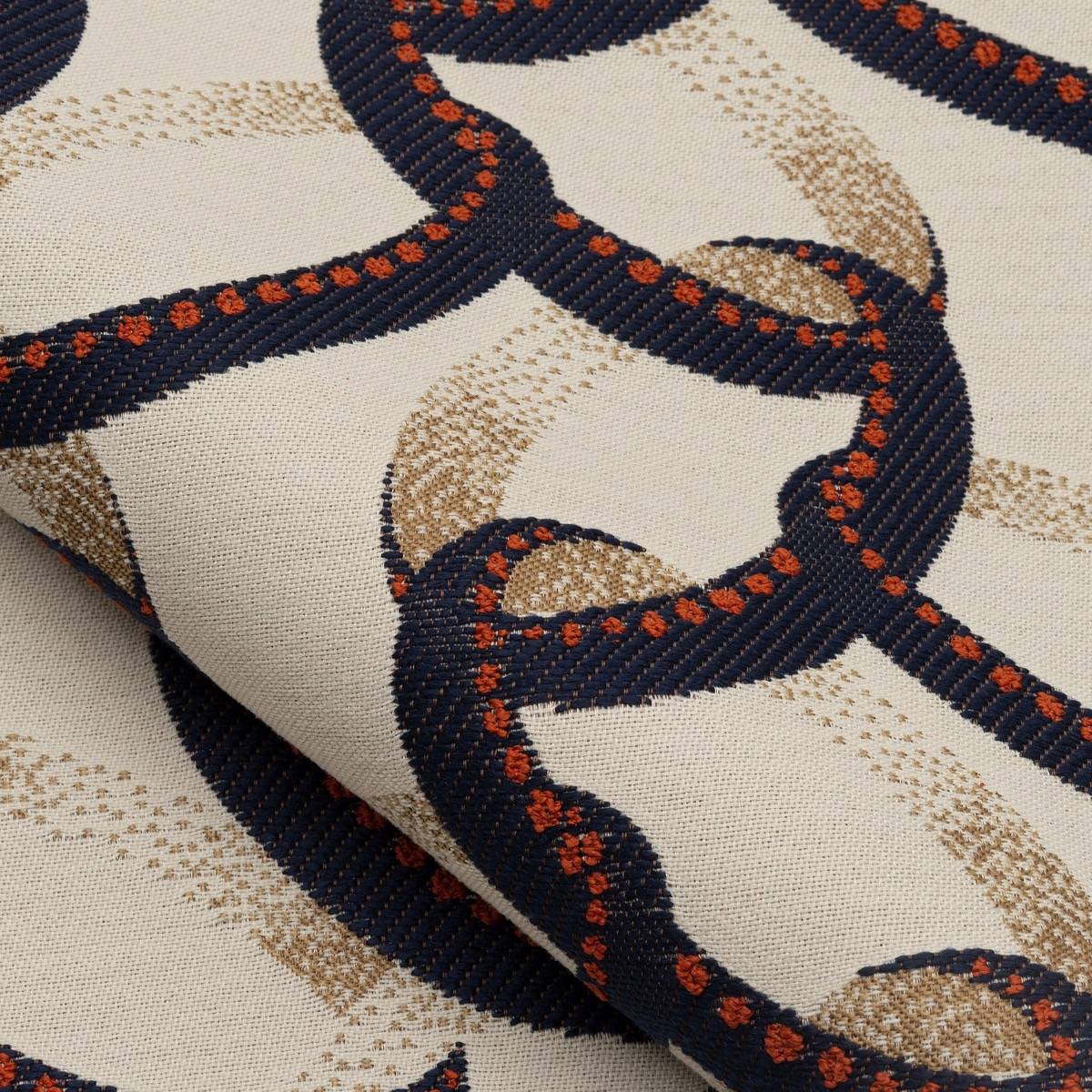 Paloma est un jacquard outdoor non-feu au motif de chaîne nautique dont les éclats sont mis en volume par un fil bouclette.