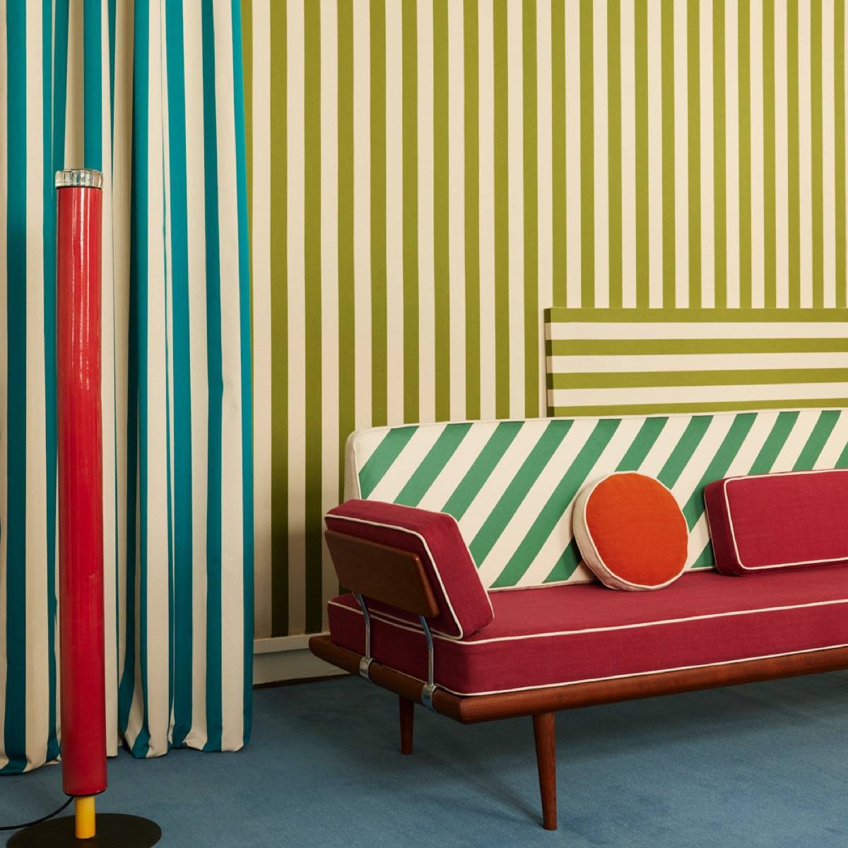 Large rayure satinée, régulière et ensoleillée, Rayure Ischia est présentée en 17 couleurs gourmandes.