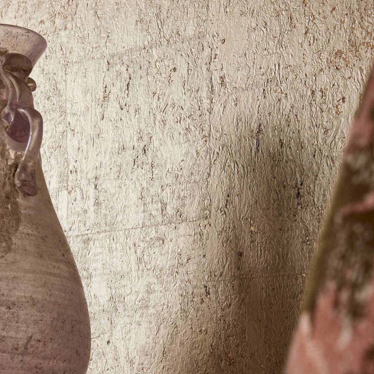 Materia naturale esaltata da tonalità dal tono prezioso, Cork III veste le pareti con sottili frammenti metallici.
